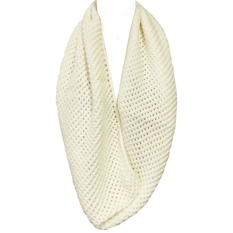 Bowbear Solid Color Warm Winter Knit Infinity Scarf, Off White_A