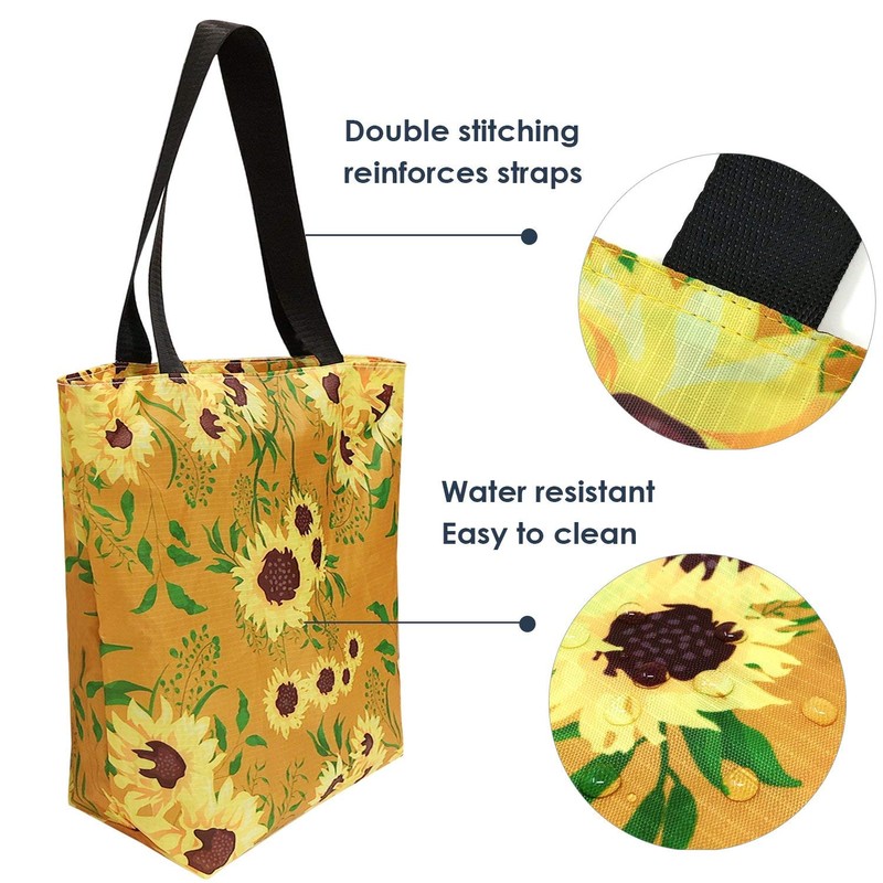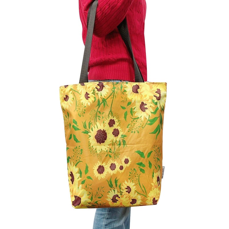 Bowbear Stylish Compact Folding Ripstop Polyester Shoulder Travel Shopping Tote Bag, Small, Sunflowers Brown