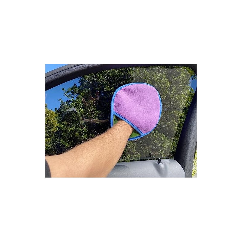 • Dual sided microfibre mitt with dedicated cleaning and finishing sides.