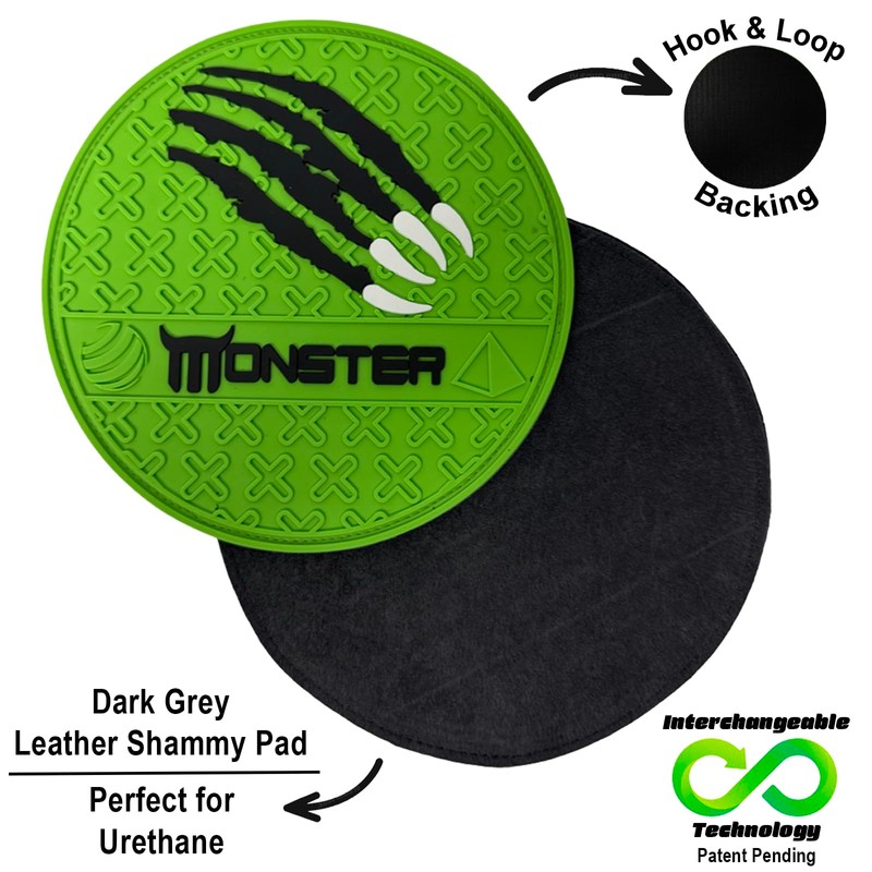 - Includes (1) Rubber Monster Pad, (1) Black Microfiber Pad, and (1) Dark Grey Leather Pad