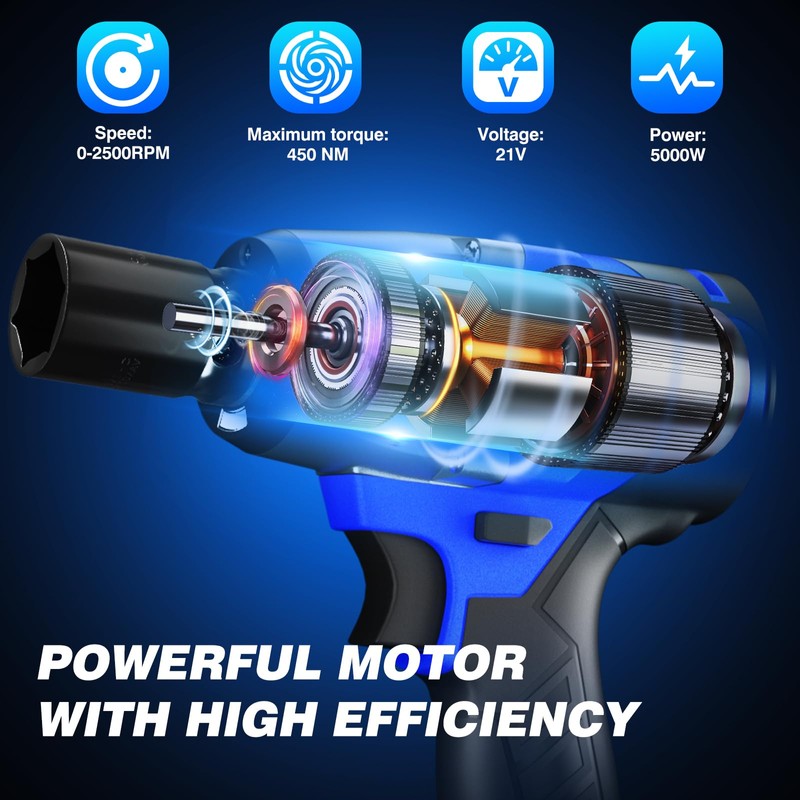 - 【Superior Power Performance】The impact wrench is equipped with a large-capacity battery to ensure the continuous and stable output of super power,providing stable and huge power and enough run time for your daily work.In addition, the Speed can reach 2500RPM, to achieve high torque and strong output.