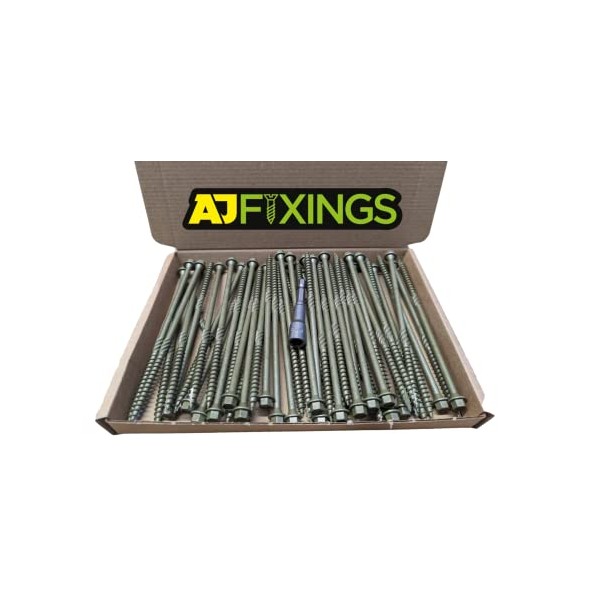 Box 50 - AJFixings Timber Hex Head Exterior Green Decking Frame Fixing Screws (100mm)