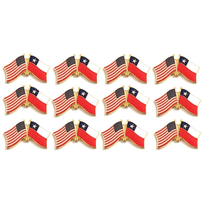Box of 12 Chile & US Crossed Double Flag Lapel Pins, Country Flag & American Flag Friendship Tie Pin Badges