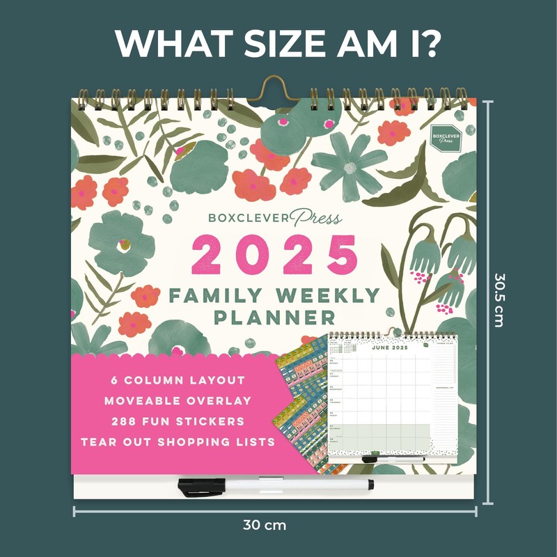 Boxclever Press Family Weekly Planner 2025 Calendar. Wall Calendar 2025 with 6 Columns. Family Calendar 2025 runs Jan - Dec'25. Calendar 2025 Family Planner with Pocket & Stickers (2025-12 Month)