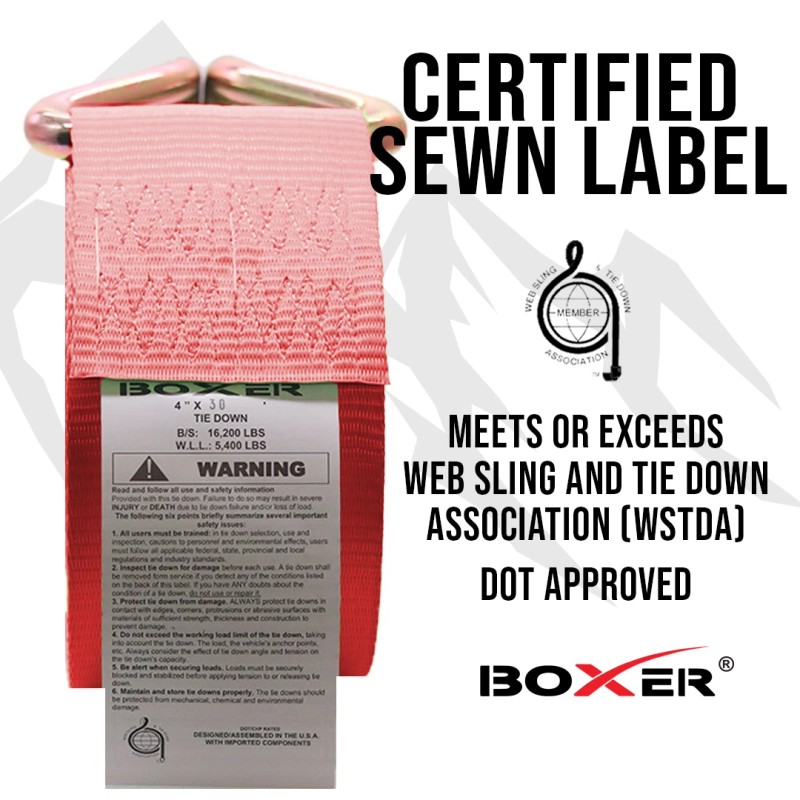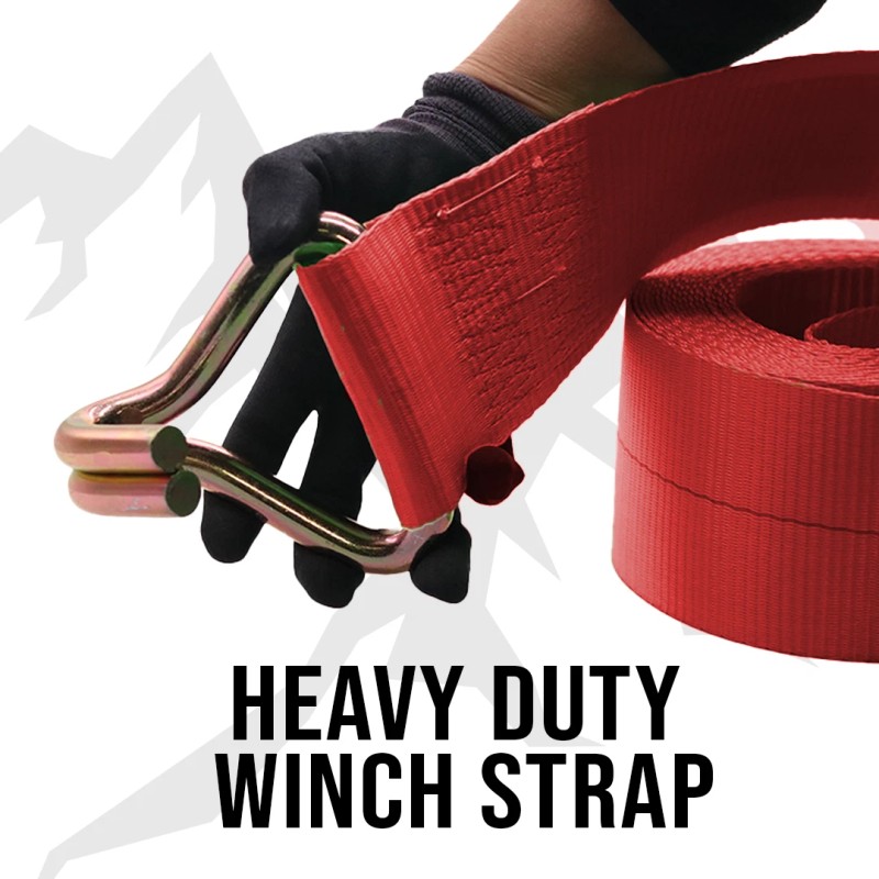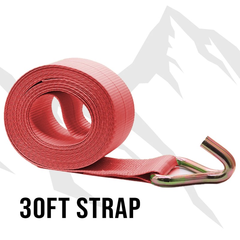 Boxer Tools Winch Strap 4" x 30' w/ Twin J Hooks 16,200lbs Heavy Duty Cargo 2 Pack - Red