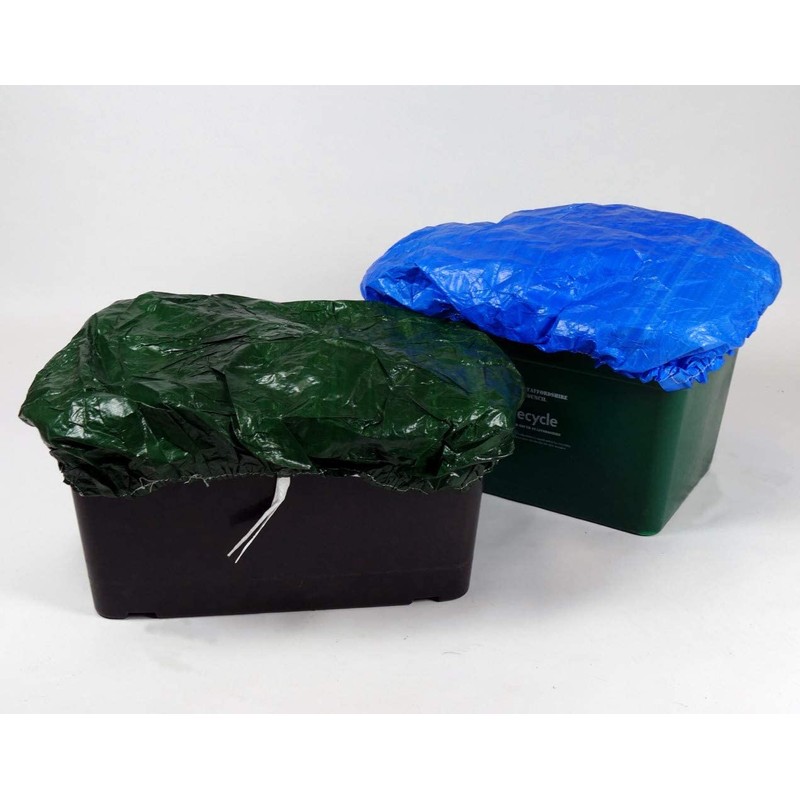 BOXHAT - BLUE or GREEN - (1-3 Pack) Recycling Box Cover - Laminated WATERPROOF Kerbside Recycling Lid - Elastic Sealed & Tie (2 Pack, Green)