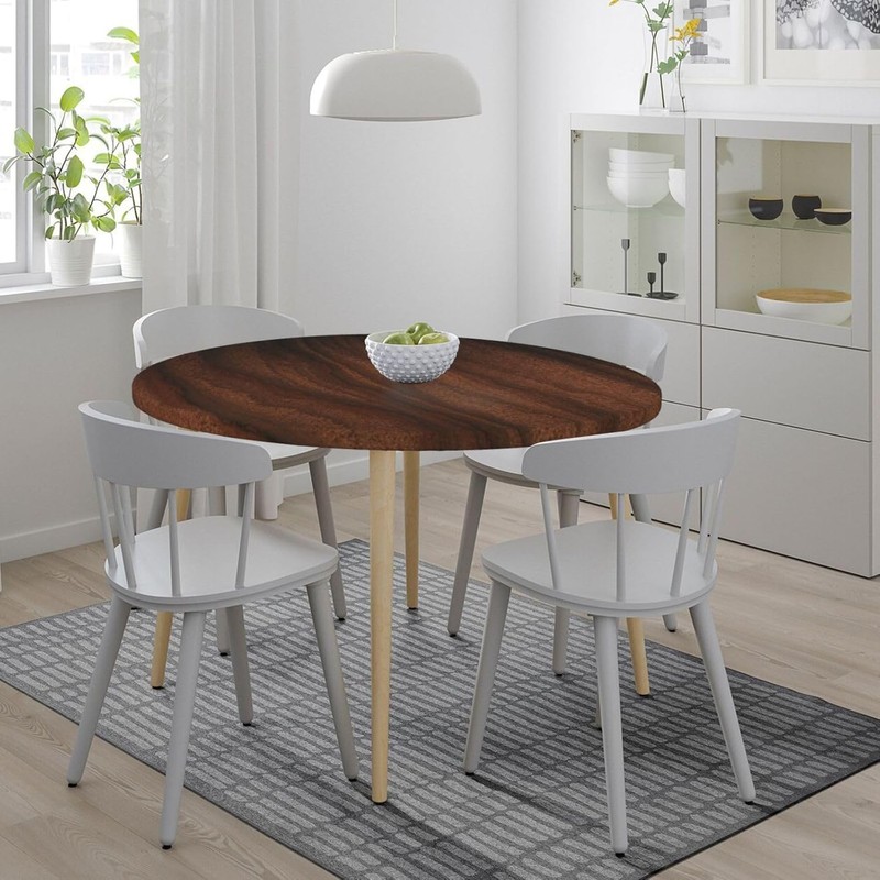 BOXIMIAO Walnut Wood Grain Round Tablecloth with Elastic Edge Table Cover Waterproof Reusable Table Cloth for Holiday Kitchen Party Patio,M(45"-50")