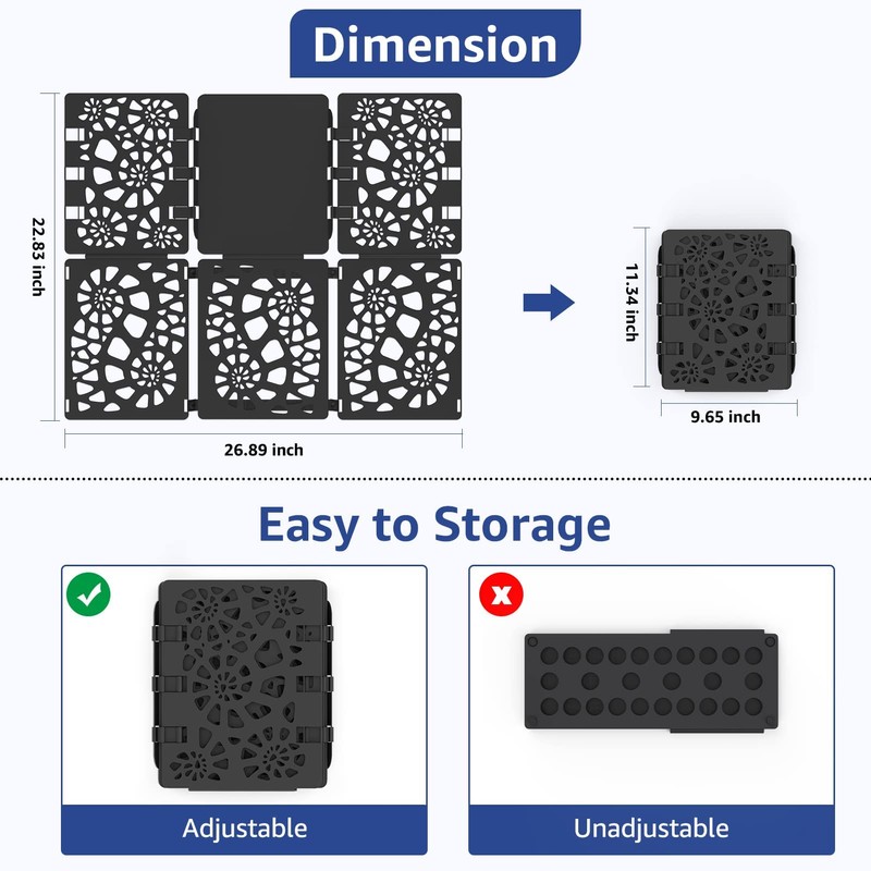 - Space-saving, the size of the folding board is 11.34 x 9.65 x 1.22 inches after folding, so that for neatly folded clothes.