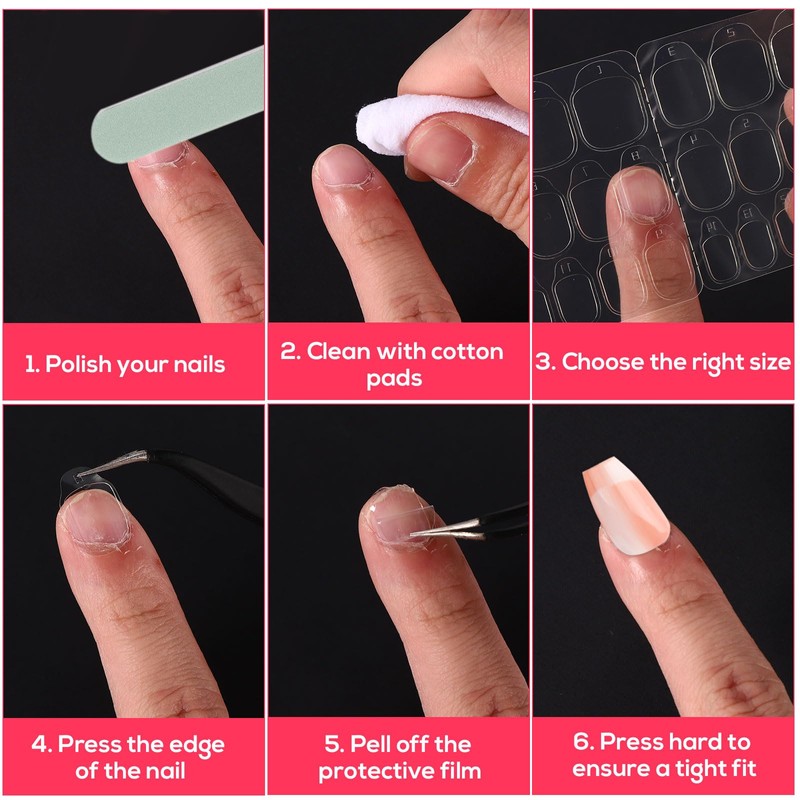 - Einfach zu bedienen und zu kleben: Drücken Sie einfach die doppelseitigen Nagelaufkleber auf Ihren Nagel und kleben Sie die falschen Nägel, die Sie mögen.Sie können die Nagelhahn vorsichtig abziehen und weniger Verschleiß oder allergische Reaktion verursachen.