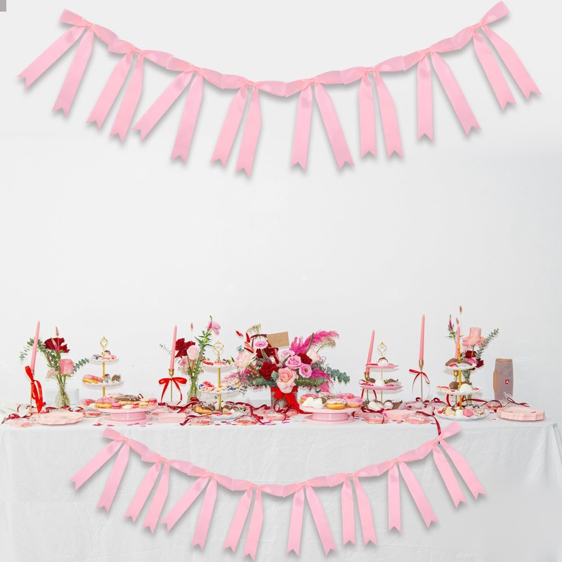 - Product Content: You will receive 1 piece of pink bow banner garland, perfect for party decoration, adding instant charm to any festive scene.