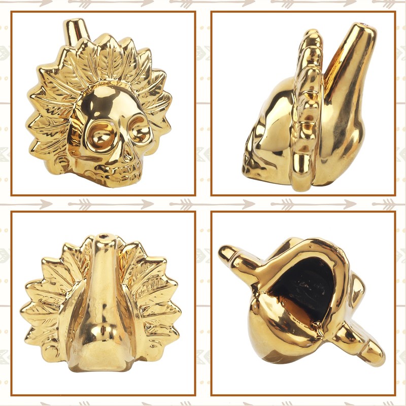 BOXOB Screaming Aztec Death Whistle, 125 Decibels, Loudest Authentic Human Sounding Screams, Skull, Aztec War Whistle with Bag, Drawstring, Collectable Halloween Gift (Gold)