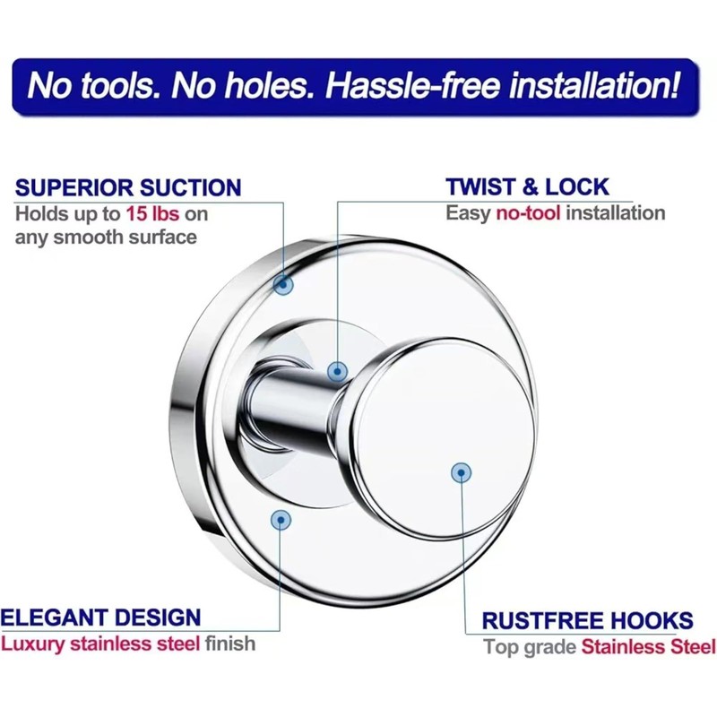 - 🚿 Waterproof & Rustproof Design – The stainless steel construction ensures that these shower suction hooks remain rust-free, even in damp environments like showers or kitchens.