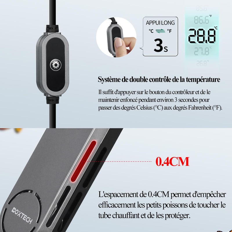 - Note: aquarium heater must be placed in the water first and then connected to be used. If an error code (E1, E2, E3) is displayed, please work according to the instructions for use. With proper application, the temperature of the aquarium can be better adjusted and controlled.