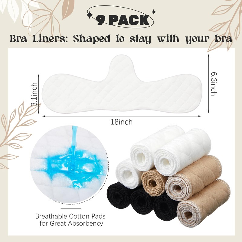 - COMFORT & HIGH ABSORPTION The 9 pack cotton bra pads have the ideal contour to fit snugly under your underwear. These bra pads for absorbing sweat under the breasts have been carefully designed, and they are equipped with firm and flat seam edges; please note that the cotton material may shrink slightly after absorbing water. You can pull it accordingly before drying to restore the original length