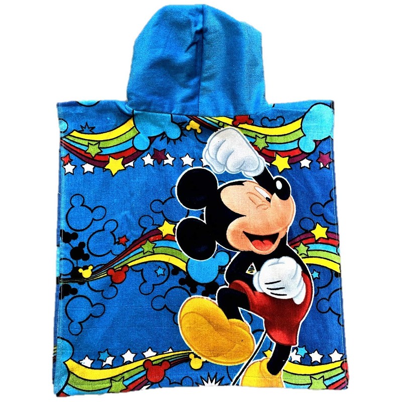 Boys Mickey Mouse Hooded Poncho with Mickey Logo and Rainbow Print