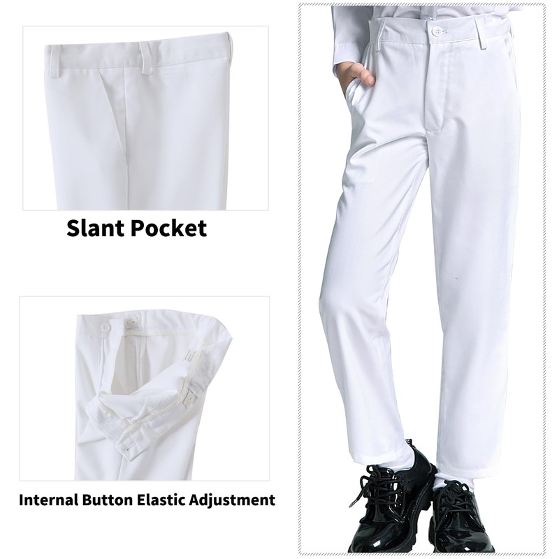 - Boys suit vest and pants - A buckle strap on the back of vest to adjust;Adjustable waistband, inside button elastic, adjust to make pants more fit.