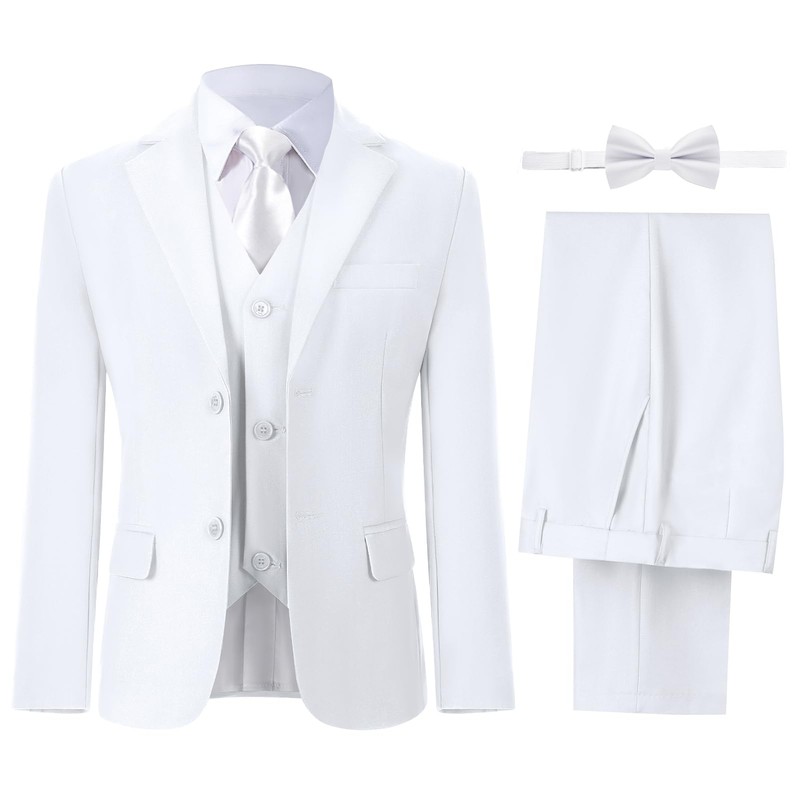 Boys Suit Formal Dress Clothes First Communion Suits for Boys White Tuxedo Toddler Boy Vest and Pants Set for Kids Wedding Outfit Size 10