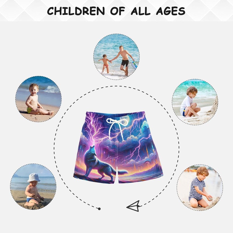 Boys Swim Trunks Wolf Howling in Moon Night Beach Board Shorts Quick Dry Swimsuit Toddler Kid Teen