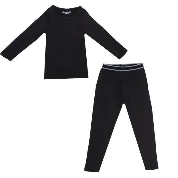 Boys Thermal Top and Bottom Underwear Set; Long Johns for Kids; Base Layer Set for Cold Weather; Microfleece Moisture Wicking (Black, 2T)