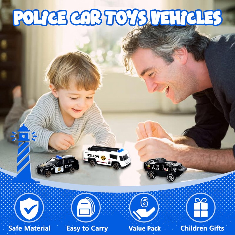- 【EASY STORAGE & TRAVEL FRIENDLY】These police car are specially designed for kids boys toddlers. They are compact, meaning they are easy to store. They are travel friendly, and can be taken anywhere for your kids entertainment. Police theme toys 1:64 diecast model, Car toys for kids boys age 3 4 5 6 7 8 9 10 year-old. WARM TIPS: Do not keep the small parts of the toy in mouth, please let your child play it under adult supervision.
