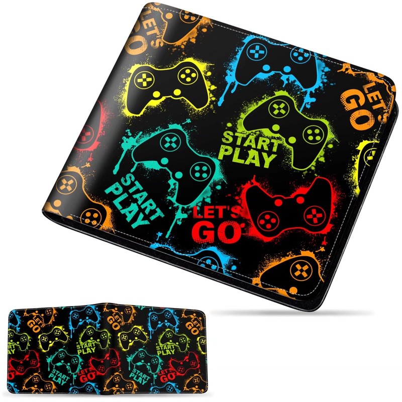 Boys Wallet Leather Bifold Wallet Teen Boys Cool Credit Card Cash Id Holder Rfid Blocking Fun Bi Fold Small Wallets(Game-Lets go)