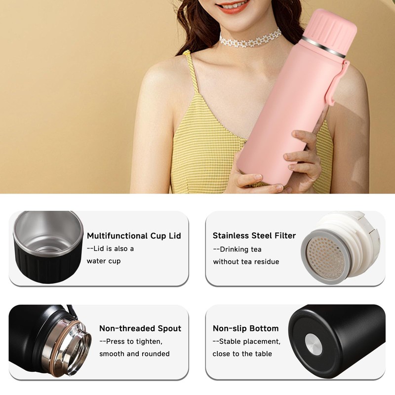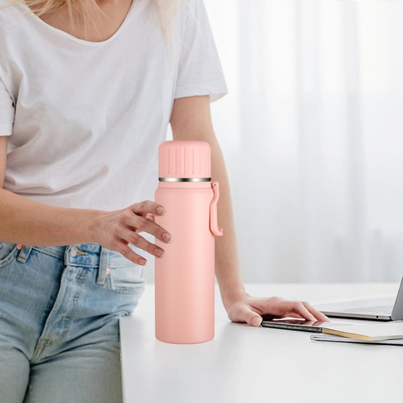Boziee Stainless Steel Thermos Flask 800 ml with Cup Insulated Flask BPA Free Portable for Travel Coffee and Tea (Pink)