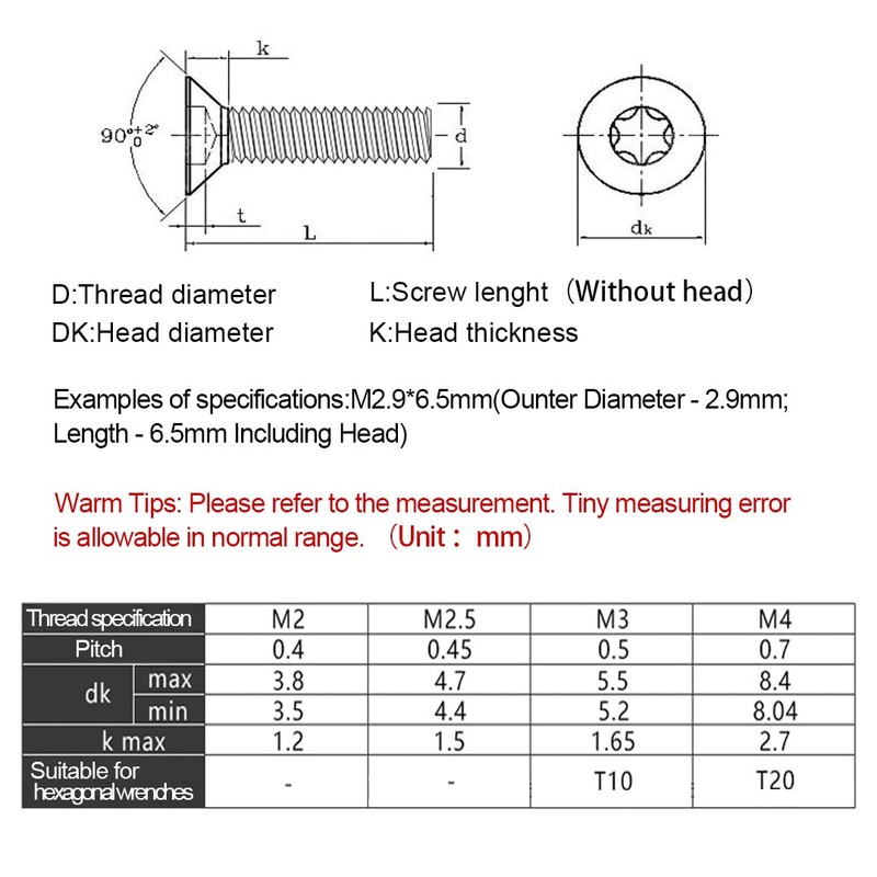 • Package includes: M2.5 x 10 mm, 100 pieces