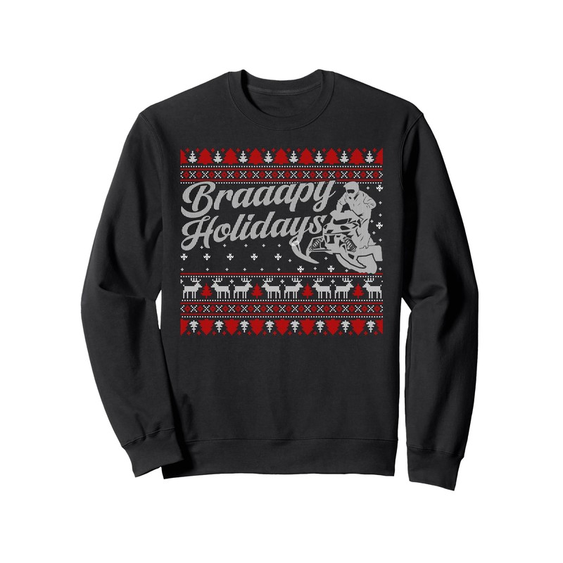 Braapy Holidays Funny Sled Snowmobile Braap Ugly Christmas Sweatshirt