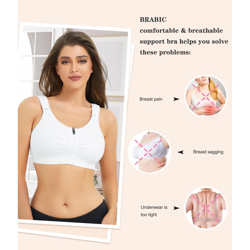 BRABIC Zip Front Closure Everyday Bra for Women Post Surgery Compression Support with Adjustable Straps Wirefree (X-Large, White)