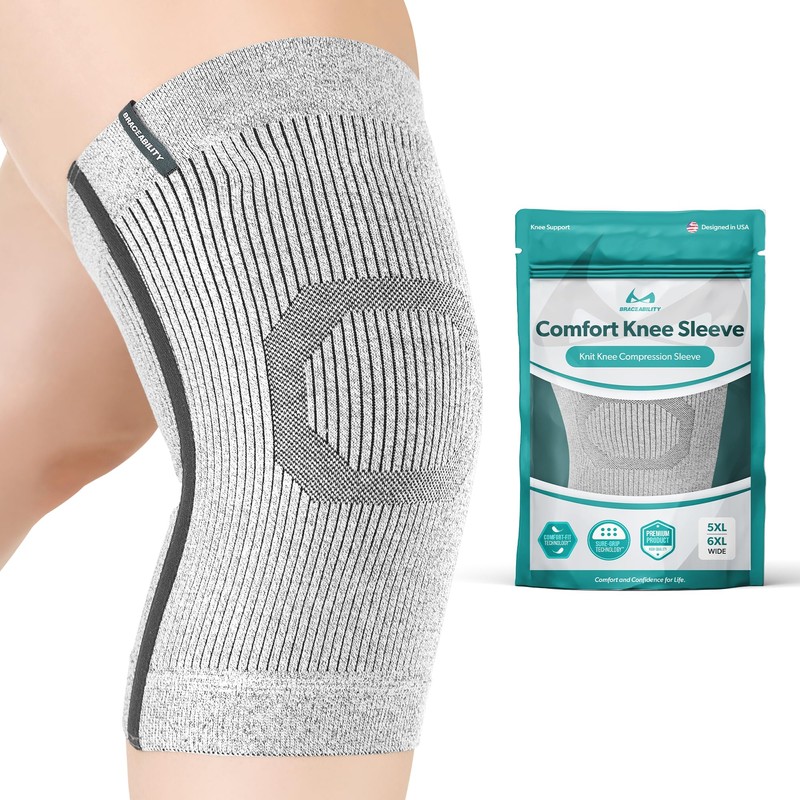 BraceAbility Plus Size Knee Compression Sleeve – Big Support Brace for Osteoarthritis, Bursitis, Strains, Arthritis, Joint Pain, Swelling, Meniscus Tears – Knee Pain Relief for Women and Men (5XL/6XL Wide)