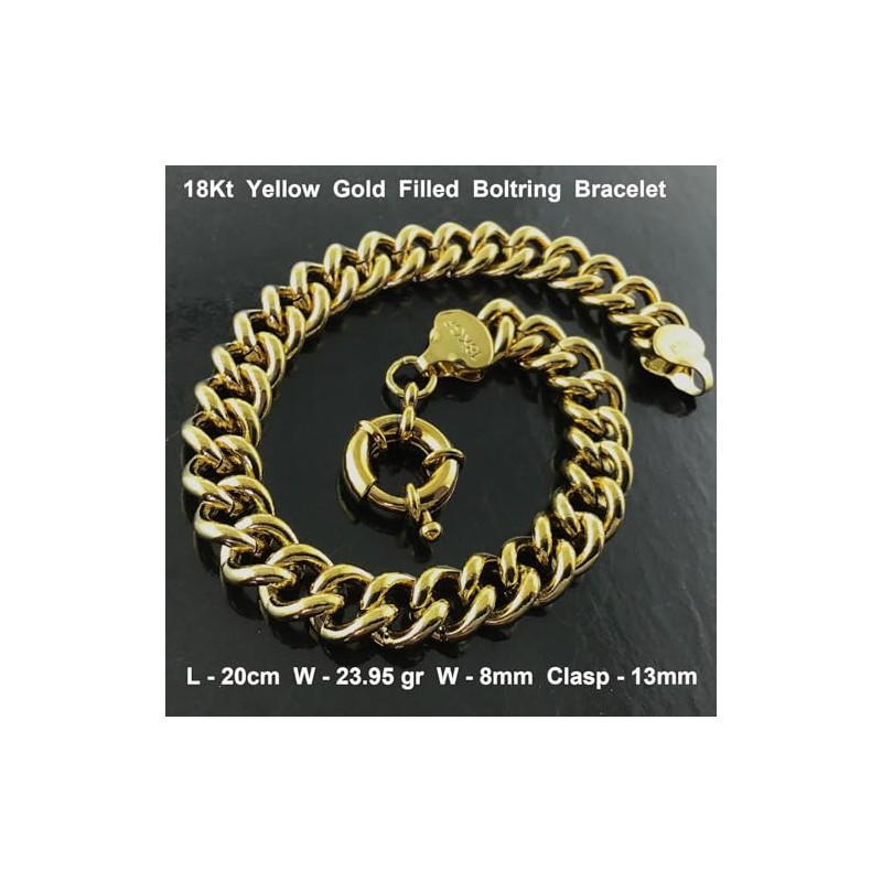 • Bracelet Real 18Kt Yellow Gold Filled Solid Boltring Statement Bangle 20cm
