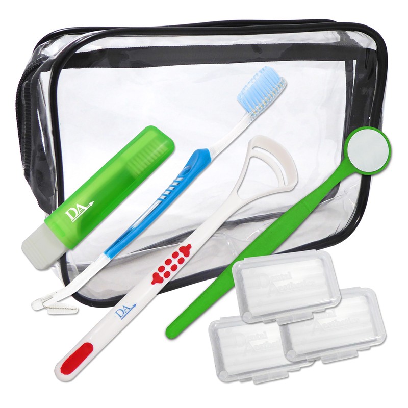 • Pack Contains ~ V-Trim Toothbrush with Interdental, 3 Cases of Orthodontic Wax, Tongue Scraper, Ortho Travel Toothbrush, Mirror & Storage Bag