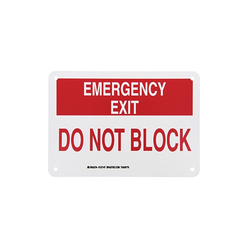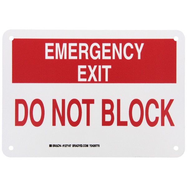 Brady 127147 Fire Safety Sign, Legend "Emergency Exit Do Not Block", 7" Height, 10" Width, Red on White