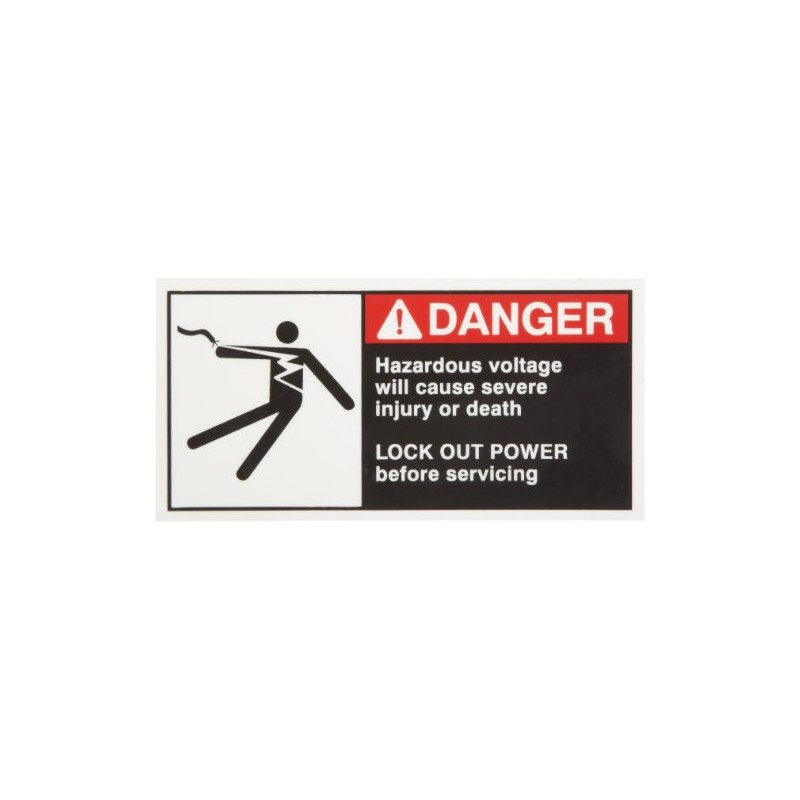 - Legend "Hazardous Voltage Will Cause Severe Injury or Death Lock Out Power Before Servicing" (with picto)