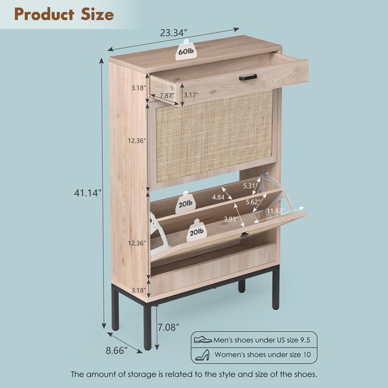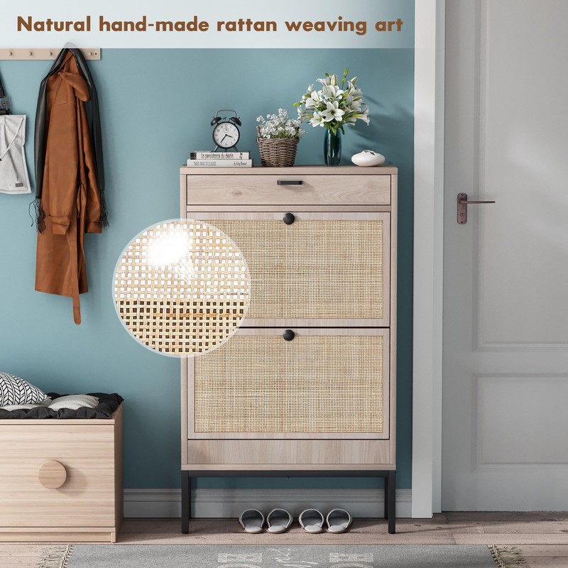 • 【Close to Modern Life】: The rattan surface is designed with a more natural ambience than a traditionally constructed shoe cabinet. Featuring a 7.08" height bottom space and height-adjustable foot knobs, it not only stores shoes, but also allows cleaning by a sweeper Robot. Suitable for your smart home life.