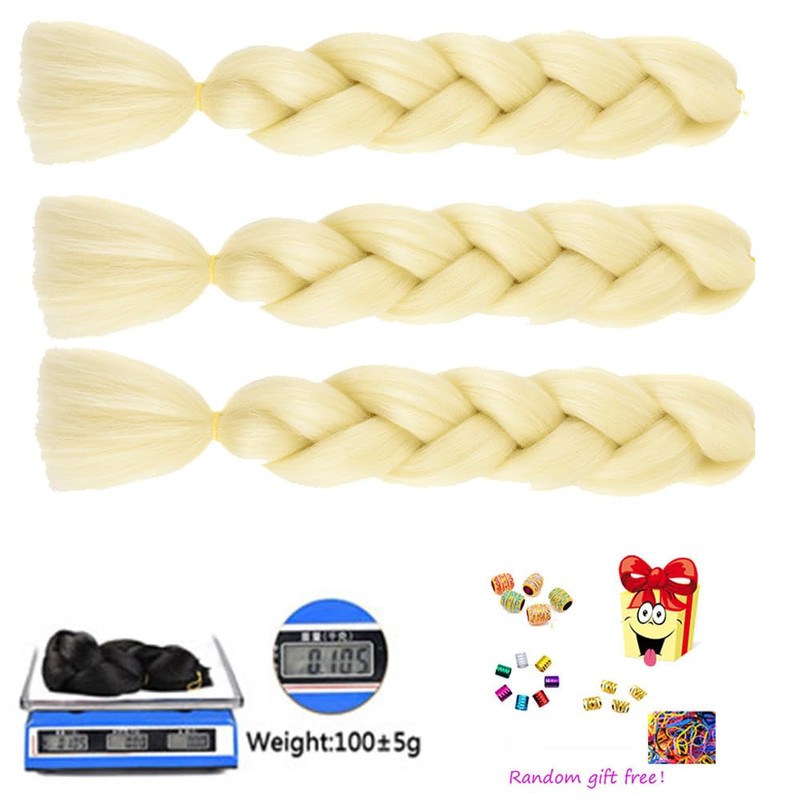 Braids Extensions, Pack of 3, Jumbo Braid Extensions, 24 Inches, Ombre Braiding Hair, Synthetic Hair for Braiding Crochet Twist Braiding Hair, #613 Blonde
