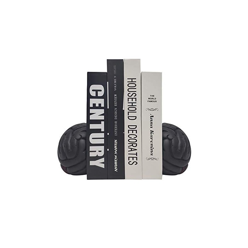 Brain Bookends, Universal Economy Decorative Bookends, Heavy Book Ends Supports for Books, 6"(L) x6(W) x4.5(H) inchs, Black,1Pair/2Piece (Brain Bookends)