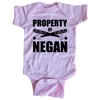 Brain Juice Tees Property of Negan Walking Dead Baby One Piece (6 Month, Azalea)