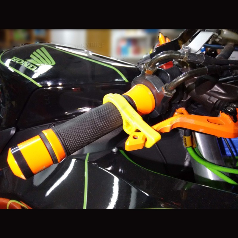 The LB Brake Lever Lock is designed to engage the brake system by holding the brake lever in. Whether you park on an incline, have it up on a stand, or you're transporting your motorcycle, you'll feel better knowing the brake is on to limit the bikes rolling movement. Simply connect the LB Brake Lever Lock to your front brake lever and pull back sliding it onto the HandleBar Hand Grip. _Stats:_ Dimensions: Please see picture(s) for approx measurements Color: Various Material: Plastic _NOTE:_ Can be used on OEM and Aftermarket Levers (Standard and Shorty Lengths). You may have to use your lever adjusters to increase the distance between the grip and lever to get the correct pressure when you pull back on the brake to engage the brake system.