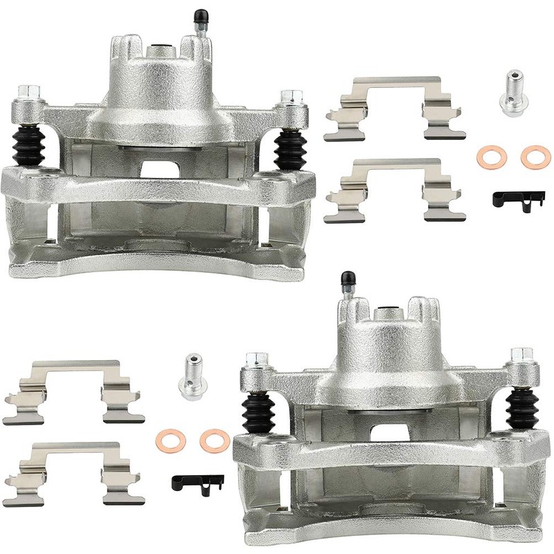 BRAKEUS Front coated Brake Caliper + Ceramic Pads fit for 2011-2014 for Chrysler 200,07-10 for Chrysler Sebring,08-14 for Dodge Avenger,07-12 for Dodge Caliber,2007-2017 for Jeep Compass Patriot