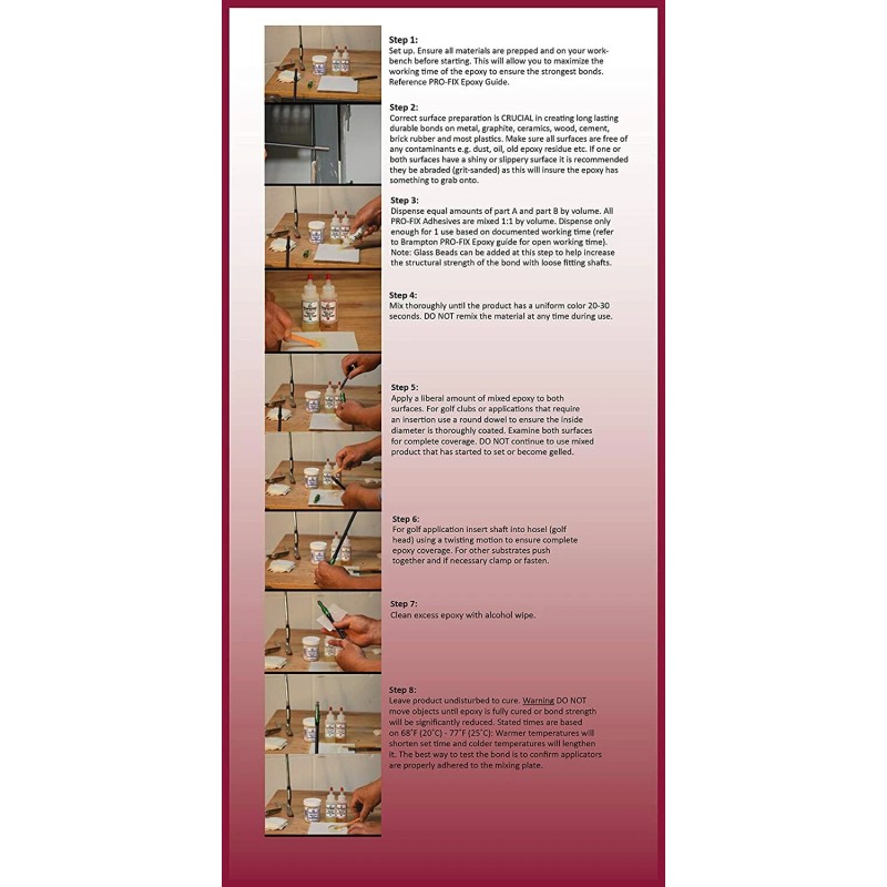 Brampton Technology developed this toughened medium-viscosity impact resistant epoxy from requests from a number of our distributors. They saw the need for a quick curing epoxy that could be dispensed and packaged in squeeze bottles. The PRO-FIX Quick Cure also needed to have a work time of 5-8 minutes and be playable within 20-30 minutes at room temperature (allow longer for colder temps). Brampton’s technical team formulated, tested and had this product ready for distribution within 30 days and is now our fastest growing epoxy. Remember, for golfers with swing speeds over 100 mph add Glass Shafting Beads to increase the structural strength of the bond.