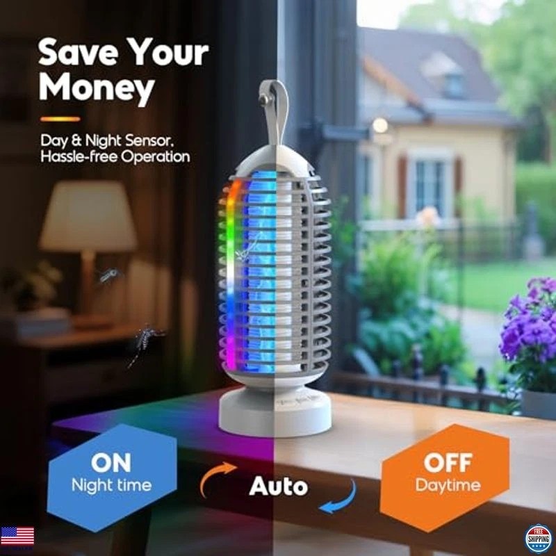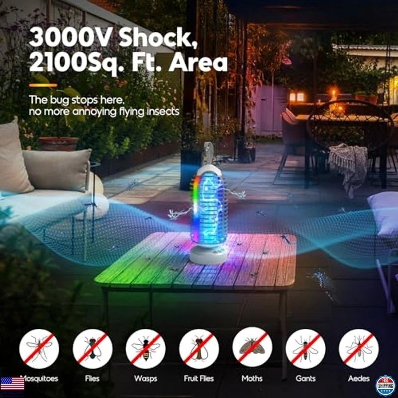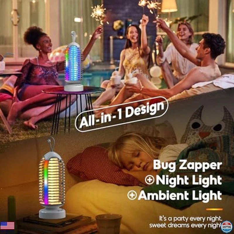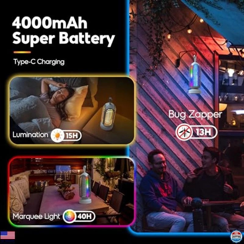 Bug Zapper with Marquee Light, Mosquito Zapper Indoor Outdoor, 4000mAh, Smart Auto On/Off Rechargeable Fly Zapper, Portable Waterproof Insect Killer for Home, Kitchen, Patio, Camping, Party - 2 Packs