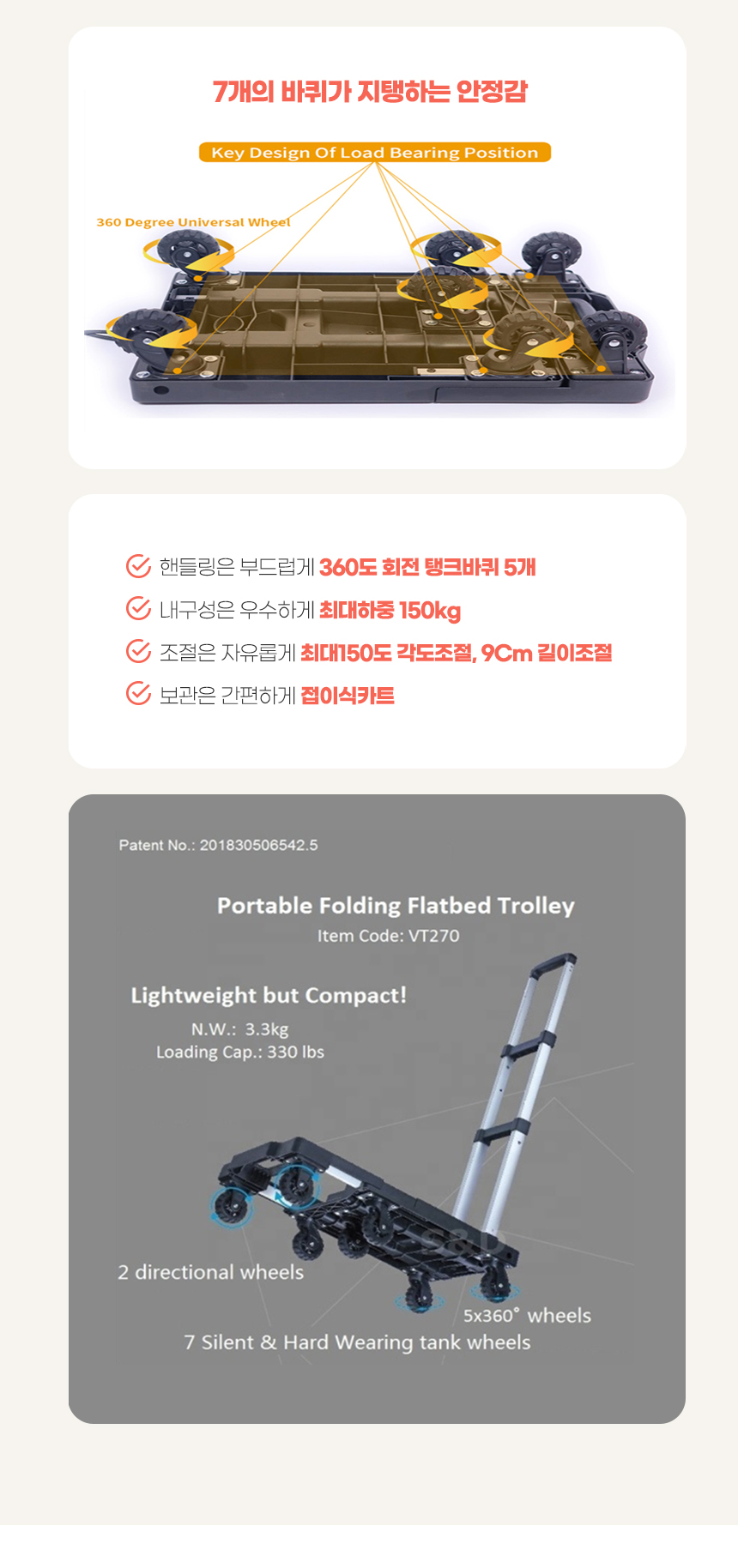 • Product name and model name: Up to 150kg Easy Moving Tank Folding 7 Wheels Expandable Hand Cart VT270X