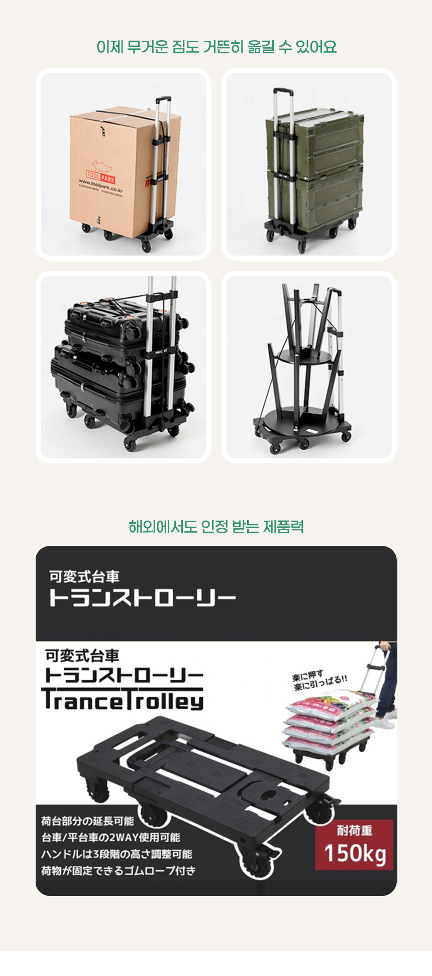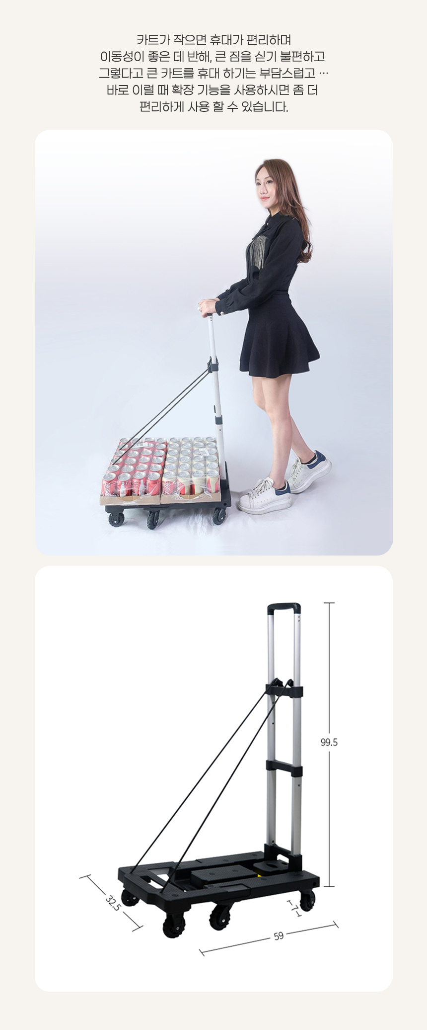 [브랜드발전소] 최대 150kg 이지무빙 탱크폴딩 7바퀴 확장형 핸드카트VT270X