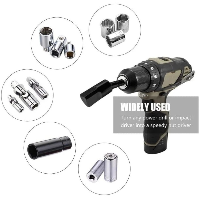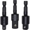 - 【3PC Socket Adapters】The set includes 3 sizes: 1/4" hex to 1/4", 3/8" and 1/2" socket adapters. They will turn your power drill or impact driver into a versatile high-speed nut driver.