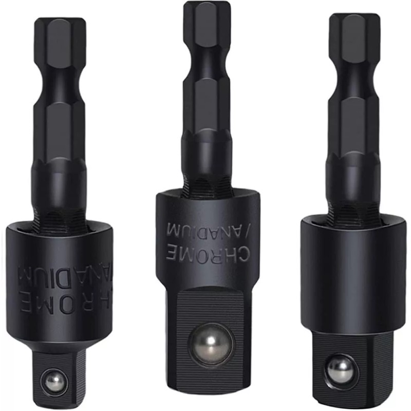 Branded 3/8" 1/2" 1/4" Universal Joint Swivel Wobble Socket Kits Impact Adapter Set of 3