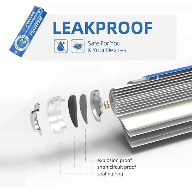 - šćNo LeakagećTriple safety valve, new spiral winding structure, the electrolyte is fully adsorbed to prevent leakage;Ruihu AA batteries escorts your high-end electronic equipment.