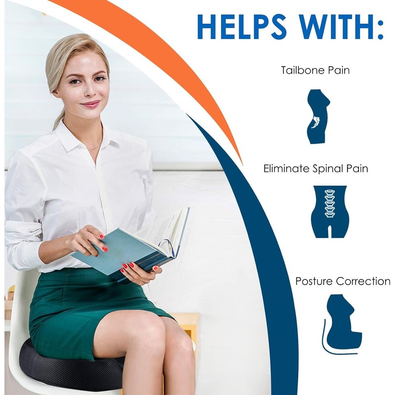 Branded Donut Pillow for Tailbone Pain XL Cool Gel Hemorrhoid Large, Black White Blue