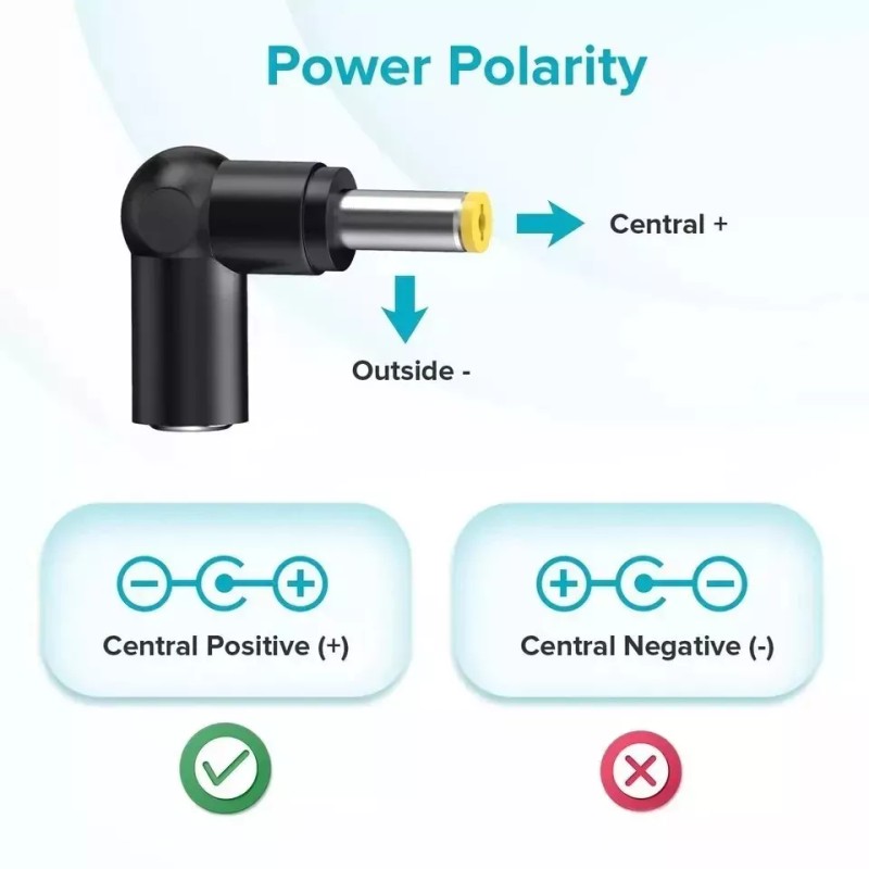 - [DC Plug Power Polarity] Central Positive(+), Outer Negative(-). Polarity could not be reversed. Some devices require Central Negative (-) and outer positive (+), which is totally opposite, please check carefully before buying