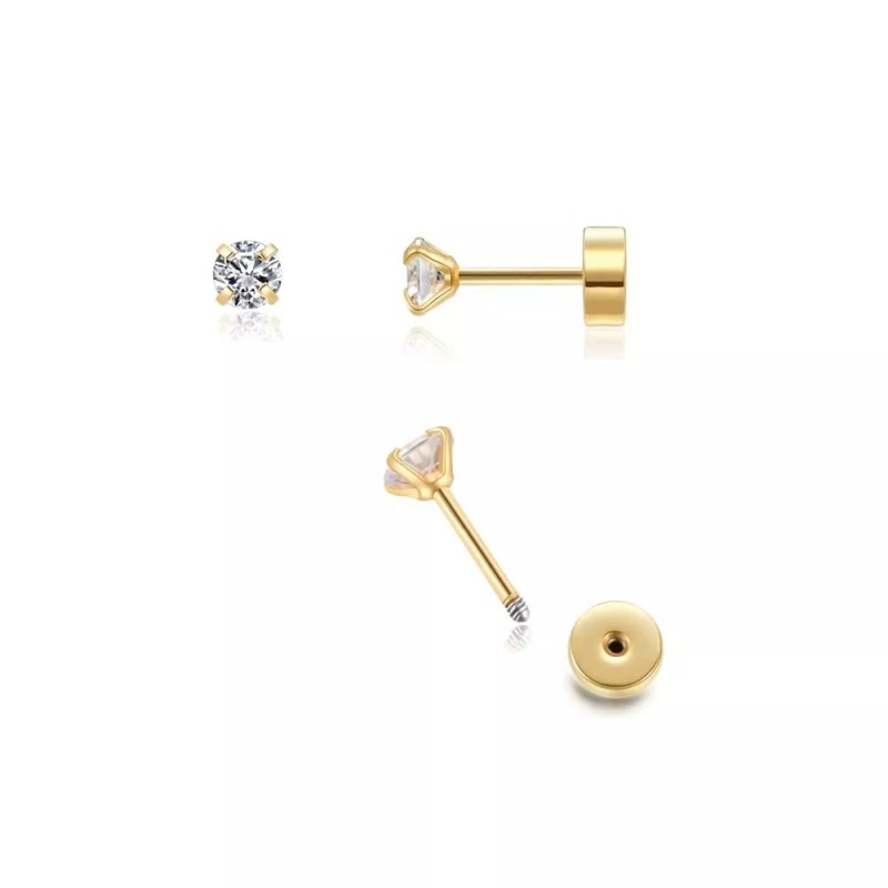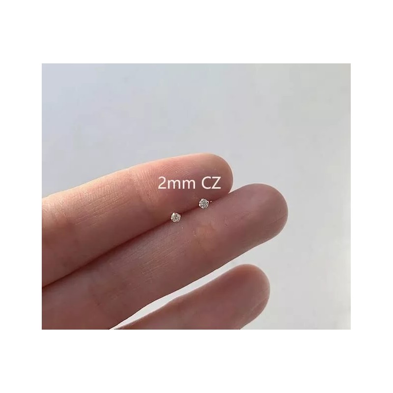 Branded Tiny 2mm CZ Stud Earrings 14K Gold Flat Screw Back Cubic Zirconia Earrings Helix